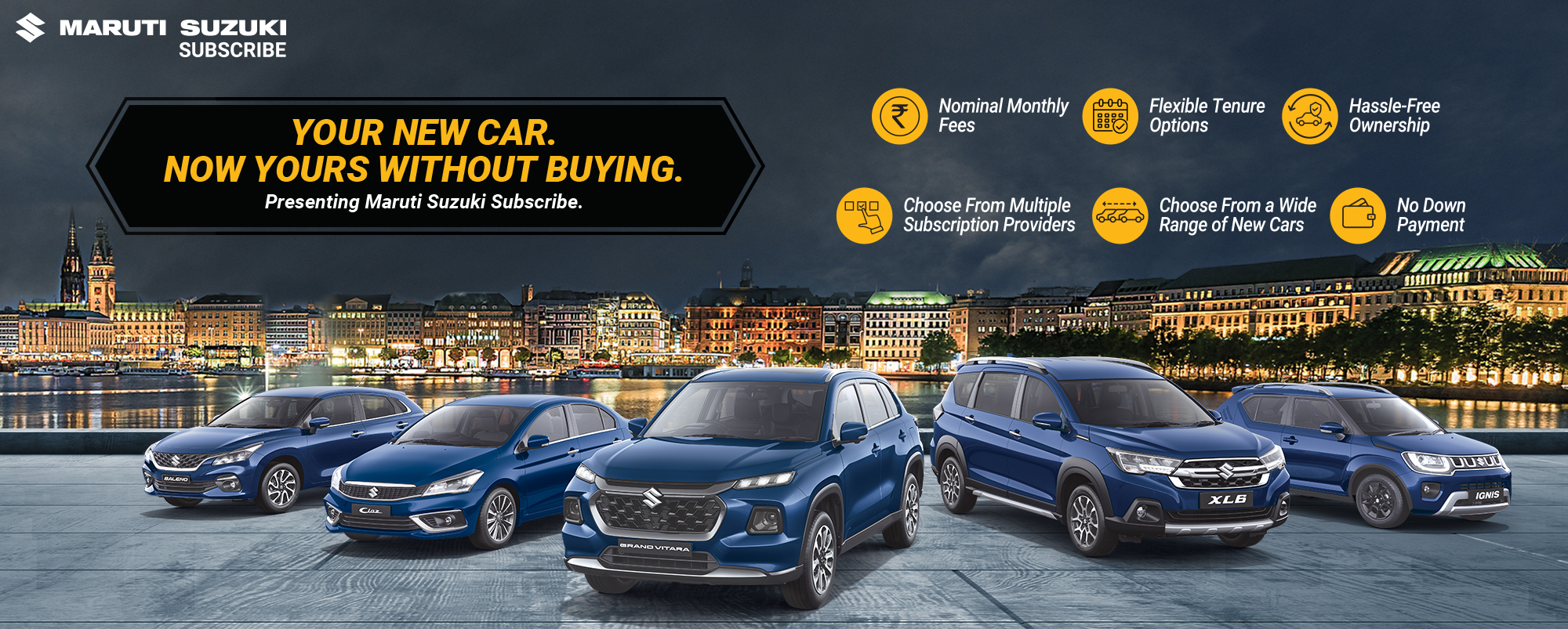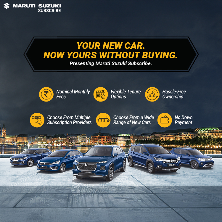 Maruti Suzuki Subscribe enables all customers to enjoy driving their preferred Maruti Suzuki cars without having to deal with all the financial responsibilities that come with owning a car.All you need to do is opt for a monthly subscription plan at a fixed monthly fee, which includes the routine maintenance and insurance costs, and choose a flexible tenure. At Sumitra DS Motors in, Reti Road, Shahjahanpur, all Hatchback, Sedan, SUV, the MUV models line-up includes Baleno, Invicto, EVitara, Jimny, Ciaz, Ignis, Fronx, Grand Vitara, XL6. Here, you will enjoy Maruti Suzuki Subscribe benefits such as: